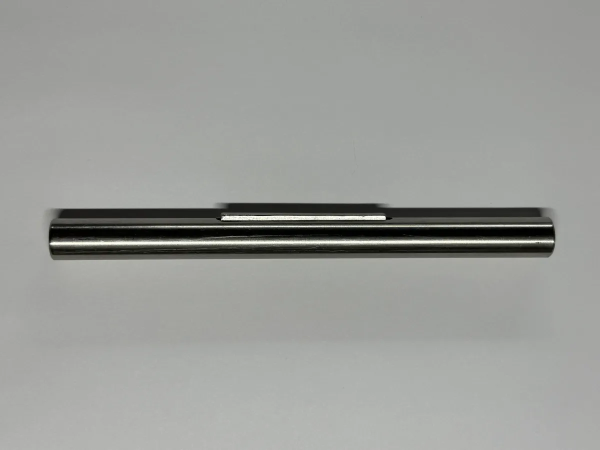 1/2" diameter, stainless steel shaft. 6" length, with 2" length key in the center, (1/8" key depth).