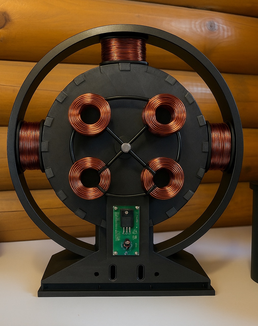 The complete Bedini Generator includes a carbon fiber Rotor with 16 Magnets, stainless steel keyed Shaft, oversized Master Coil, Bedini Circuit Board, Recovery Circuit Board, Input Battery, Charge Batteries, and accessories. The Bedini Generator runs without traditional fuel, while charging batteries, making it ideal for Off Grid or camping.